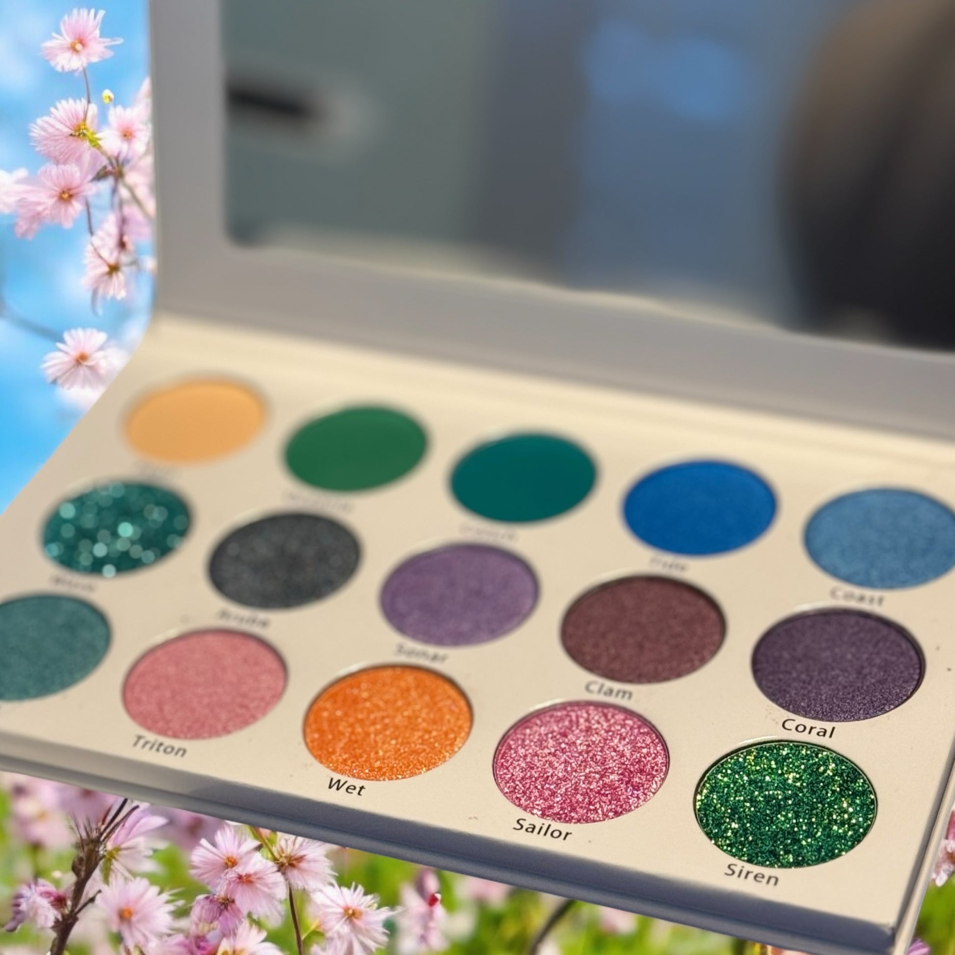 Create beach-inspired makeup looks with The Oceania Palette. This eye shadow palette features a mix of vibrant blues, greens, and shimmers, perfect for brightening your look during vacation. Each shade blends easily, so you can create a multitude of looks with ease. Take your look to the next level with The Oceania Palette.